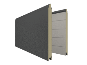 De Berger Wood-Line garagepoort is opgebouwd uit 40 mm dikke stalen sandwichpanelen met een isolerende, brandvertragende schuimkern die CFK-vrij is. Deze constructie is gelijk aan die van de Berger High-Line en zorgt voor uitstekende isolatie, stabiliteit en een lange levensduur.