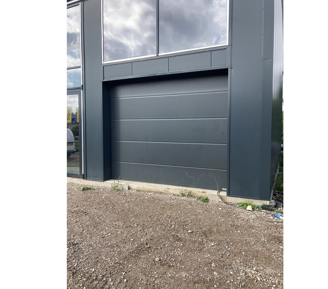 Voor een autobedrijf hebben wij twee zeer nette industriepoorten geleverd en gemonteerd. De poorten zijn uitgevoerd met A40 panelen en vier glassecties, afgewerkt in de kleur RAL 7016 mat fijnstructuurlak. De overheadpoorten worden bediend met een kettingtakel en zijn voorzien van alle benodigde beveiligingen. De glassecties zorgen voor voldoende lichtinval in de werkplaats, terwijl het geheel perfect aansluit bij de uitstraling van het bedrijf.