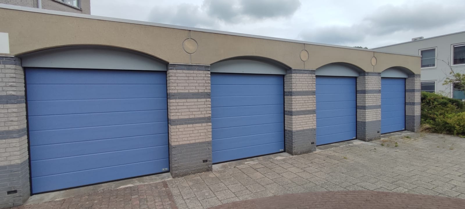Voor een VvE hebben wij zes sectionale garagepoorten mogen leveren en monteren. De garagepoorten zijn uitgevoerd met handbediening en voorzien van een cilinderslot, wat zorgt voor een eenvoudige en betrouwbare bediening. Gekozen is voor de standaardkleur RAL 9016, verkeerswit, waardoor de poorten een frisse en tijdloze uitstraling hebben en mooi aansluiten bij het gebouw. Het resultaat is een praktische en verzorgde oplossing voor alle gebruikers van het complex.